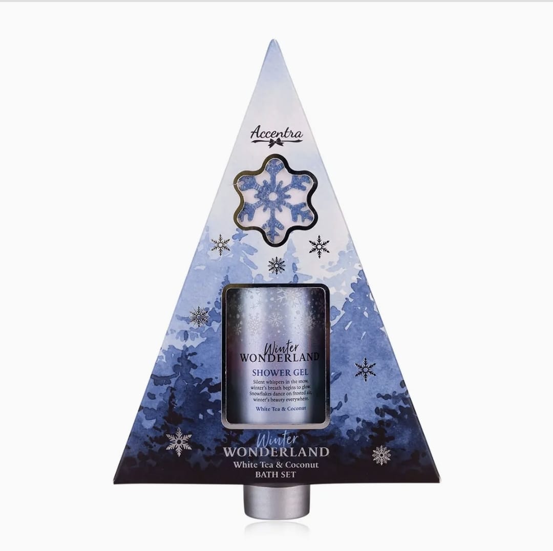 Coffret winter, idéal en cadeau santa secret ou cadeau invité sur votre table de noël. Composé d'un gel douche 100ml et d'une bombe de bain 25gr. Parfum thé blanc et noix de coco